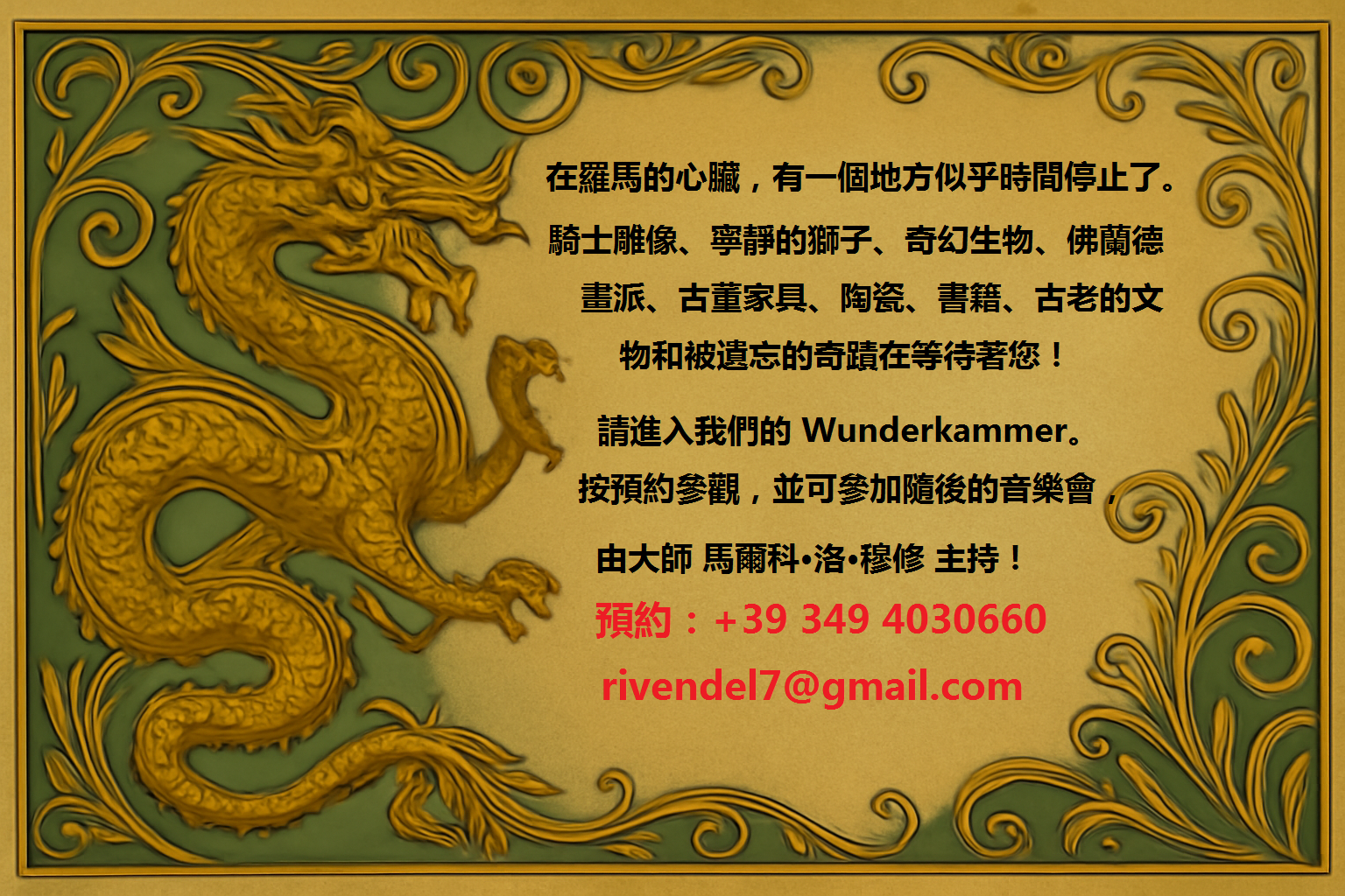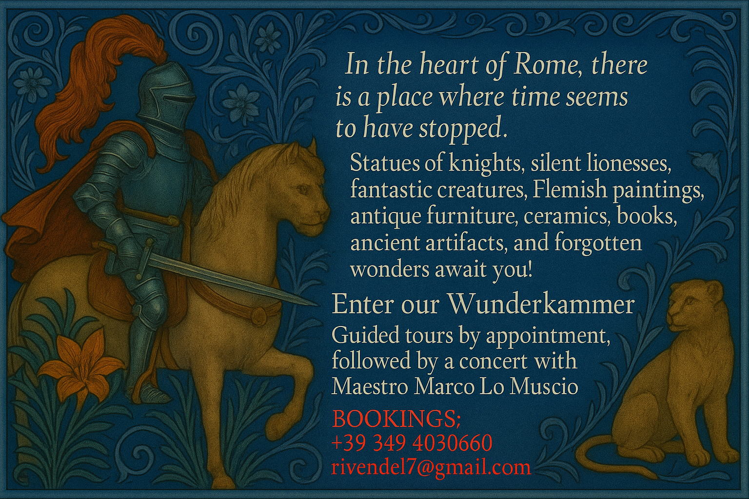 Wunderkammer House-Museum: Discover one of Italy's most unusual and fascinating hidden gems in Rome: a Neo-Gothic, Fantasy and Flemish-inspiredWunderkammer. Our House-Museum is based on the historical "cabinets of curiosities", where rare artworks, scientific instruments, natural wonders and mysterious artefacts were collected to amaze and inspire visitors. Inside you'll find extraordinary objects, unique stories, and an atmosphere suspended between art, history and mystery. It is the perfect experience for culture lovers, families, curious minds and travellers seeking something truly different. Entering Maestro Lo Muscio's House-Museum feels like stepping through the wardrobe of The Chronicles of Narnia into another dimension — a magical world of culture, art, alchemy and great music. After the guided tour, visitors may enjoy a piano and organ concert performed by Marco Lo Muscio, international musician and collaborator of Steve Hackett (Genesis).