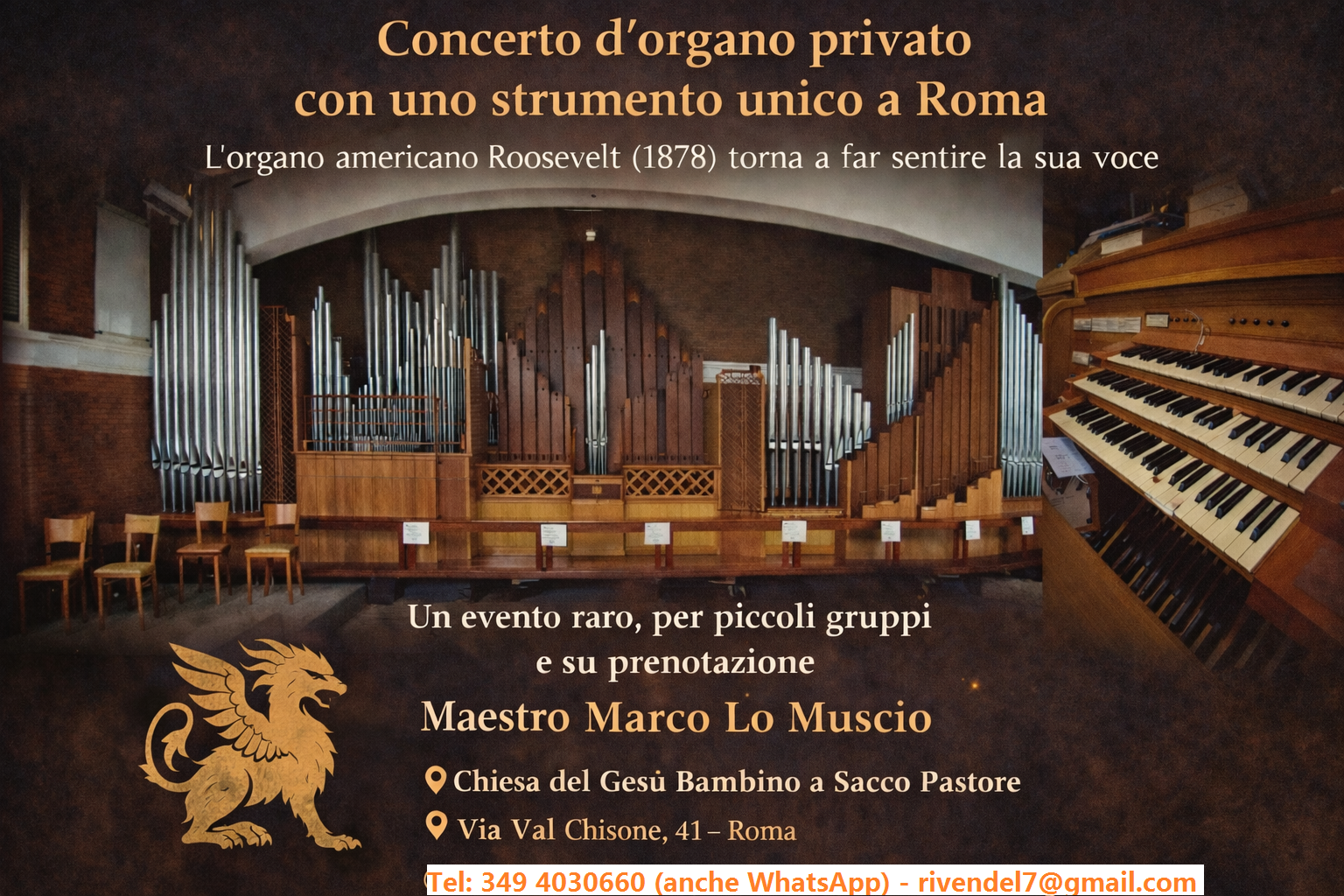 Experience a private organ concert in Rome on the historic Roosevelt Organ (1878), the only American Romantic pipe organ in Italy, performed by Maestro Marco Lo Muscio.